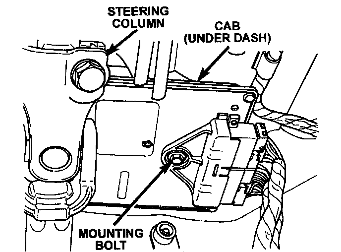 The CAB is located under the instrument panel to the right side of the steering column. It is mounted to bracket with one bolt. The bracket is mounted to the front upper cowl panel.