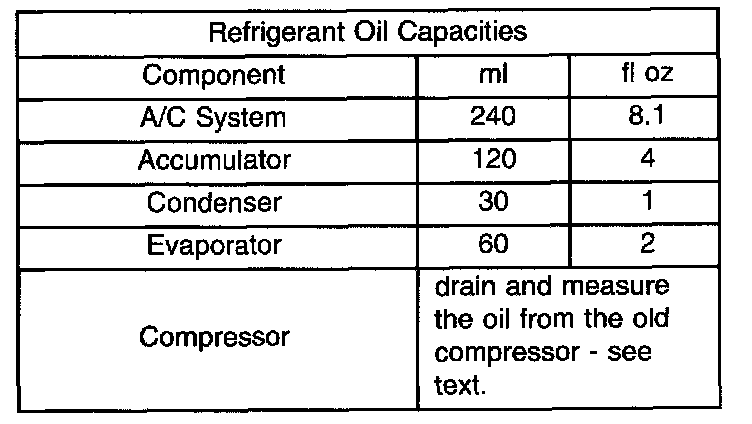 Refrigerant Oil Capacities Chart: