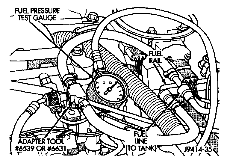 Note: A quick loss of pressure usually indicates a defective check valve in the filter/regulator. A slow loss of pressure usually indicates a defective check valve in the electric fuel pump.