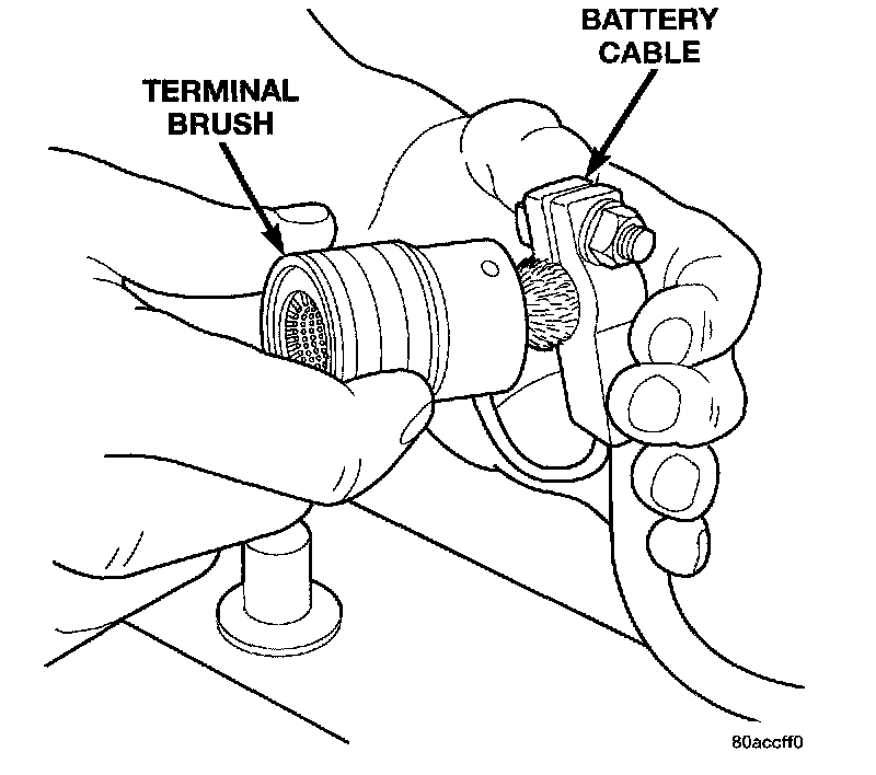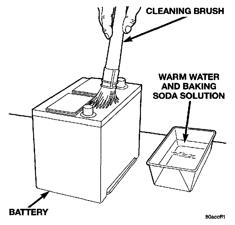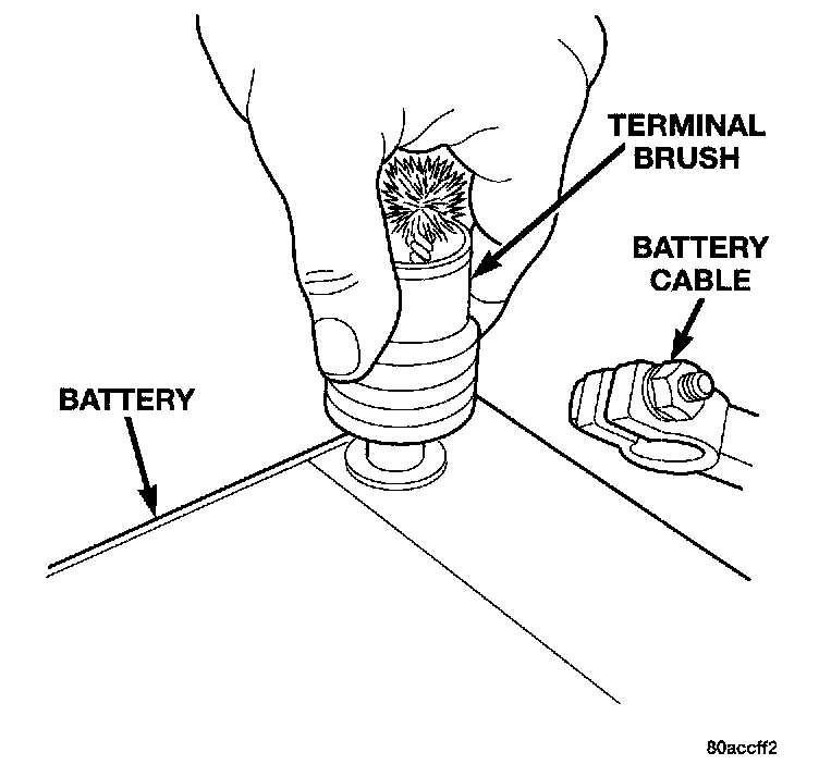 10. Clean any corrosion from the battery terminal posts with a wire brush or a post and terminal cleaner, and a sodium bicarbonate (baking soda) and warm water cleaning solution.