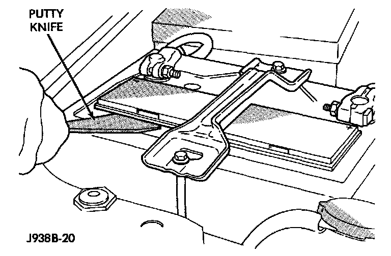 5. Inspect the battery tray and hold downs for corrosion or damage. Remove any corrosion using a wire brush and a sodium bicarbonate (baking soda) and warm water cleaning solution. Paint any exposed bare metal and replace any damaged parts.