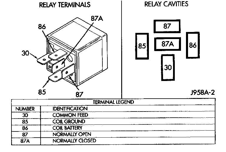 2. The relay normally closed terminal (87A) is connected to terminal 30 in the de-energized position, but is not used for this application. Go to Step 3.