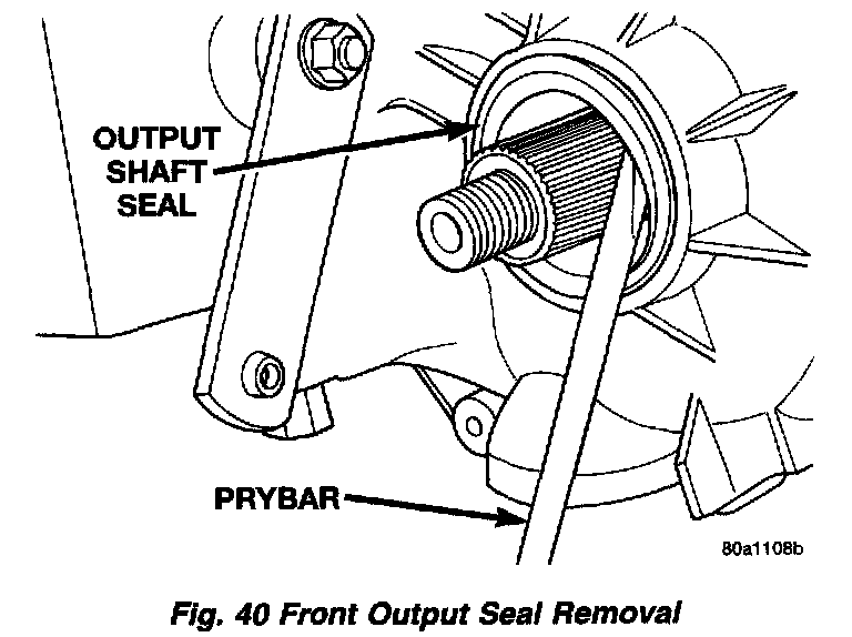 1. Remove the front output shaft seal from case with pry tool.