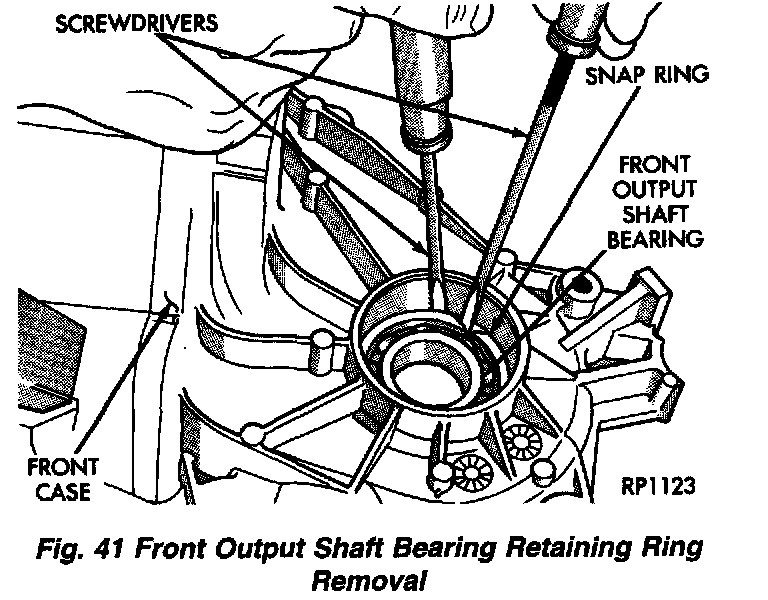 2. Remove the front output shaft bearing retaining ring with screwdriver.