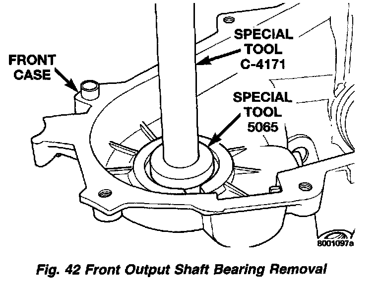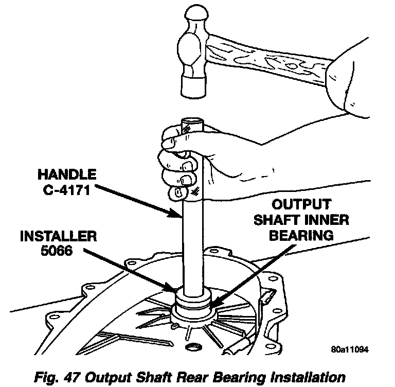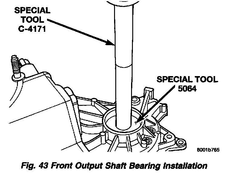 4. Install front output shaft front bearing in case with Tool Handle C-4171 and Installer 5064.