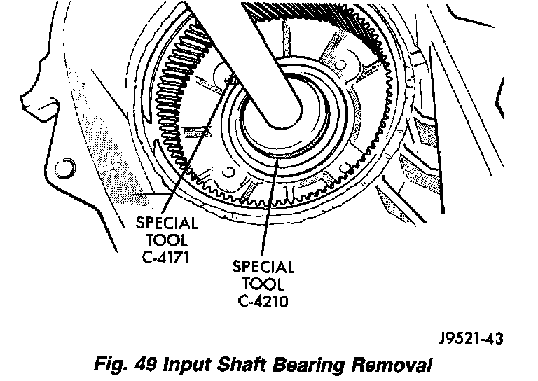 9. Using Remover C-4210 and Handle C-4171, drive input shaft bearing from inside the annulus gear opening in the case.