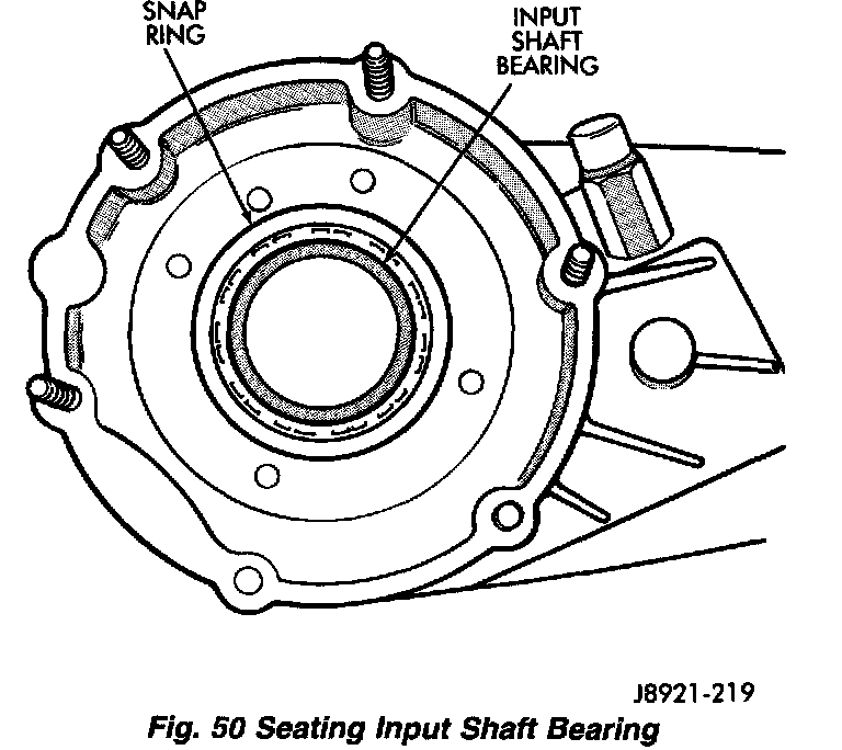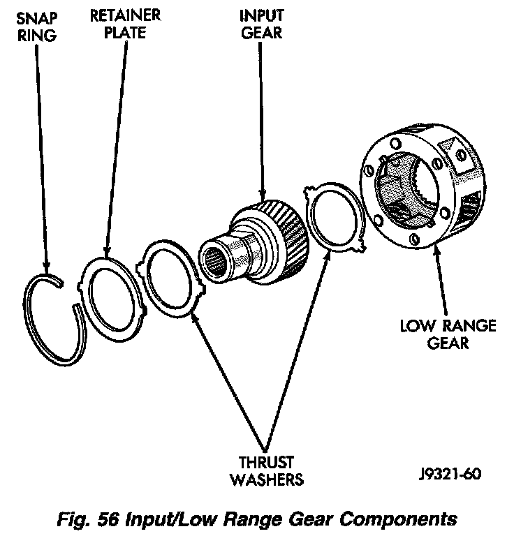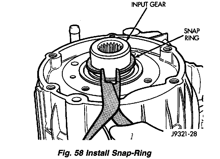 2. Install snap-ring to hold input/low range gear into front bearing.