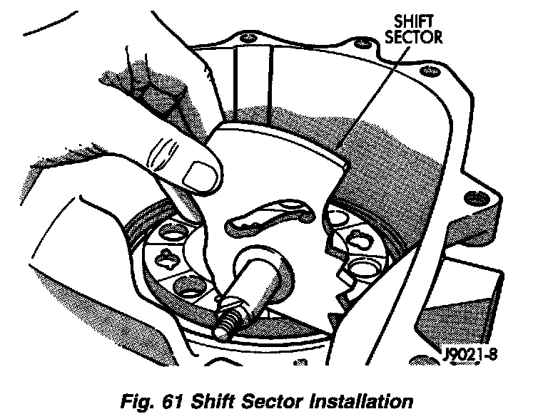 2. Install shift sector in case. Lubricate sector shaft with transmission fluid before installation.