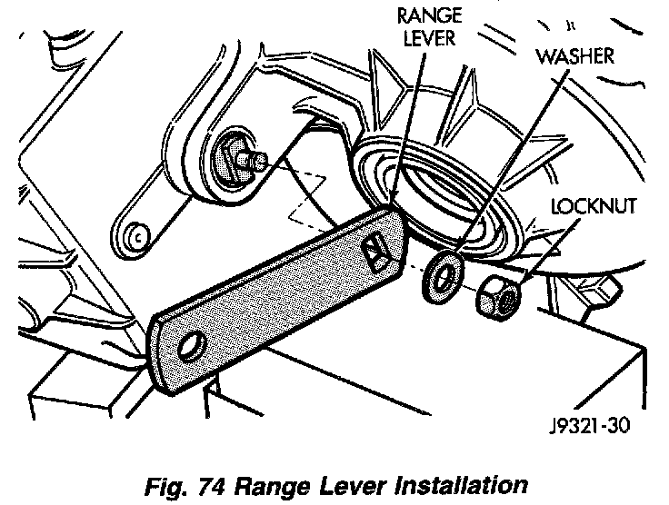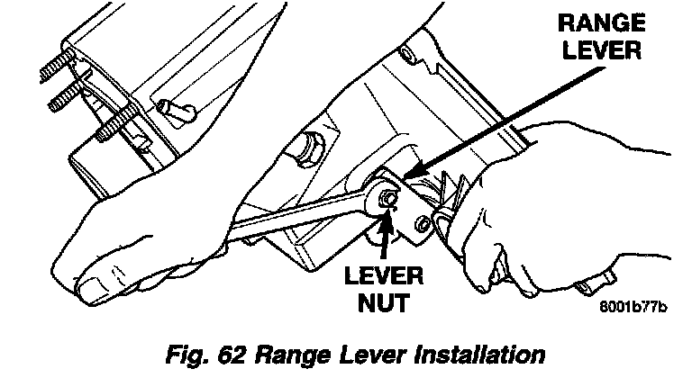 3. Install range lever, washer, and nut on sector shaft. Tighten range lever nut to 27 - 34 Nm (20 - 25 ft. lbs.) torque.