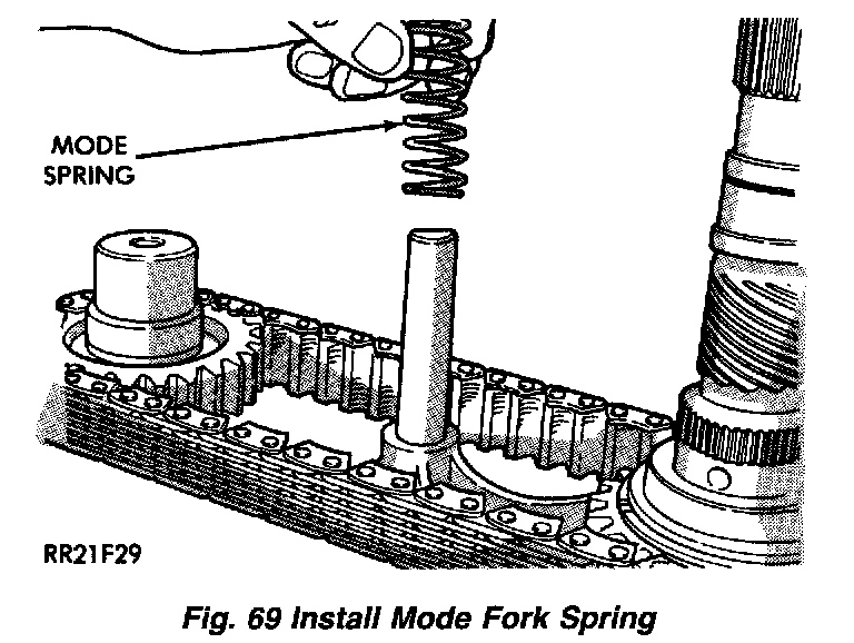 5. Install mode spring on upper end of mode fork shift rail.