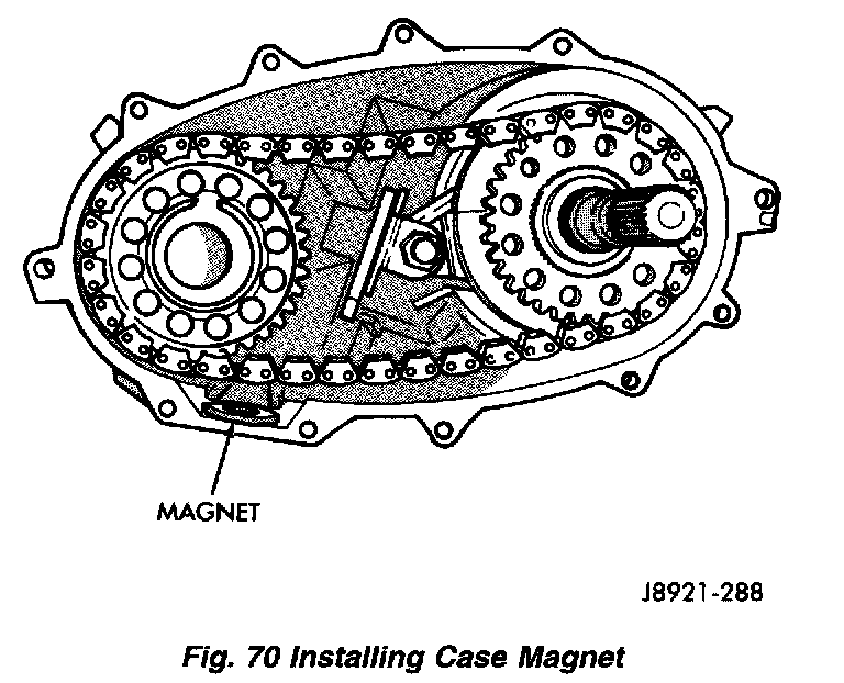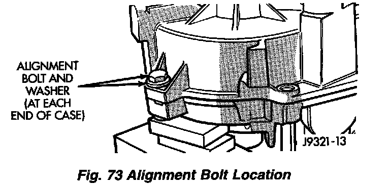 8. Install case attaching bolts. Alignment bolts at each end of case are only ones requiring washers.