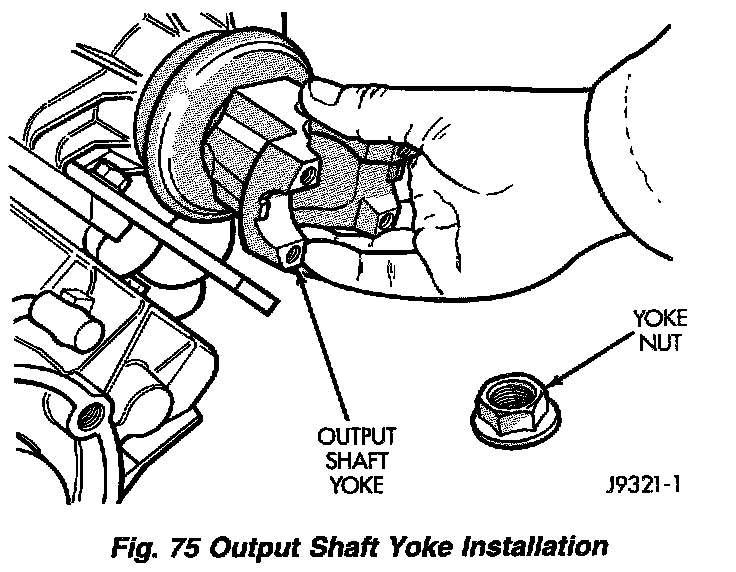4. Lubricate yoke hub with transmission fluid and install yoke on front shaft.