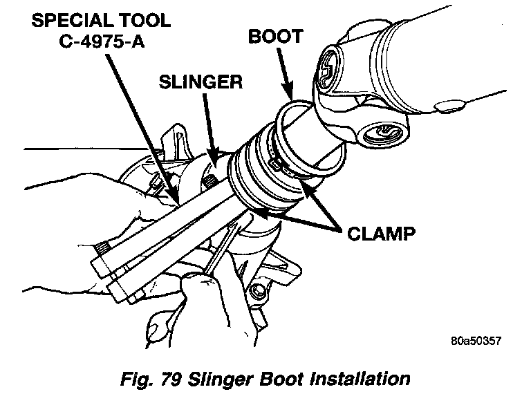 8. Install boot on output shaft slinger and crimp retaining clamp with tool C-4975-A.