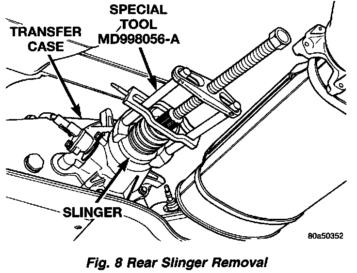4. Using Puller MD-998056-A, remove rear slinger.