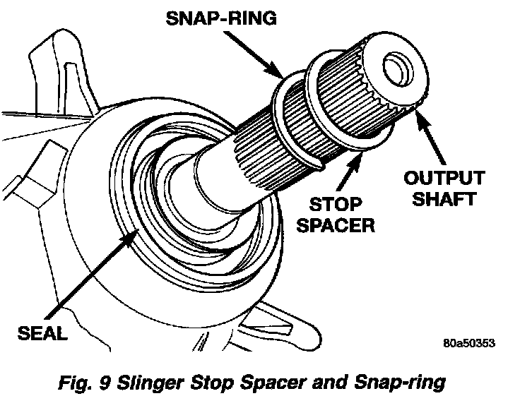 5. Remove slinger stop spacer and snap-ring from output shaft.