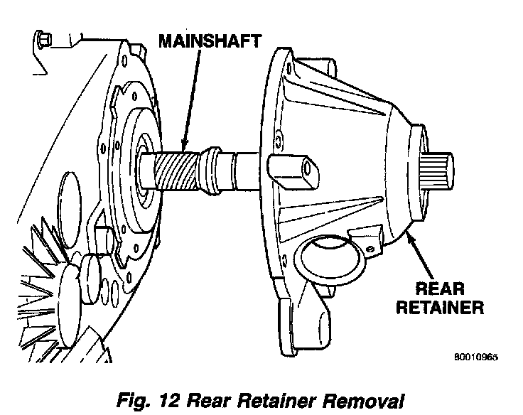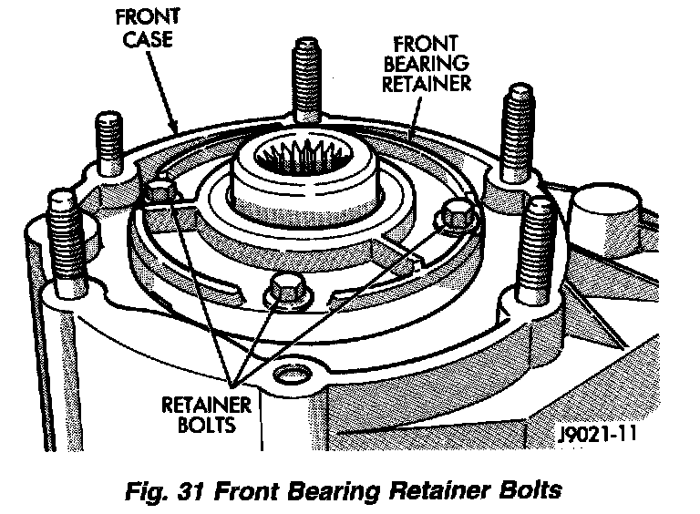 1. Remove front bearing retainer attaching bolts.
