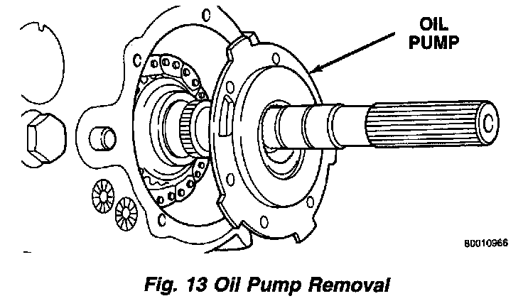 11. Remove snap-ring holding oil pump in position on output shaft.