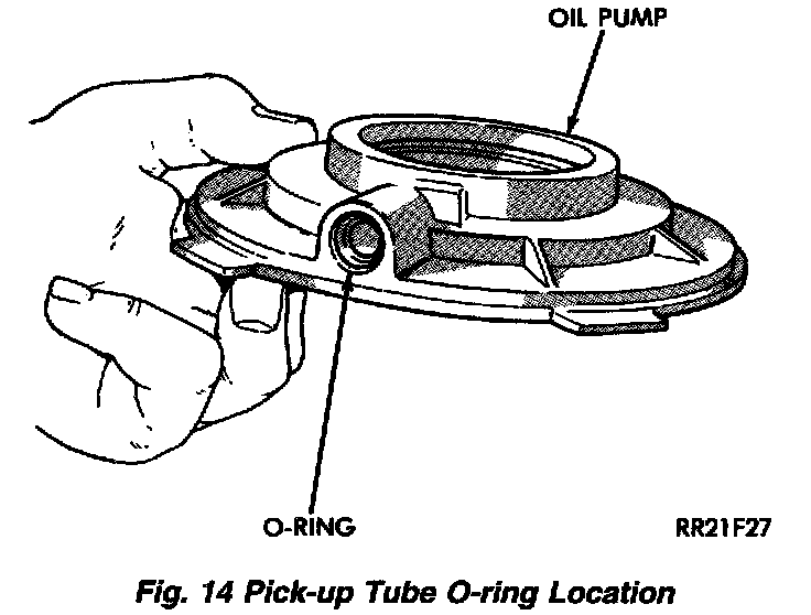 13. Remove pick-up tube O-ring from oil pump, if necessary. Do not disassemble the oil pump, it is not serviceable.