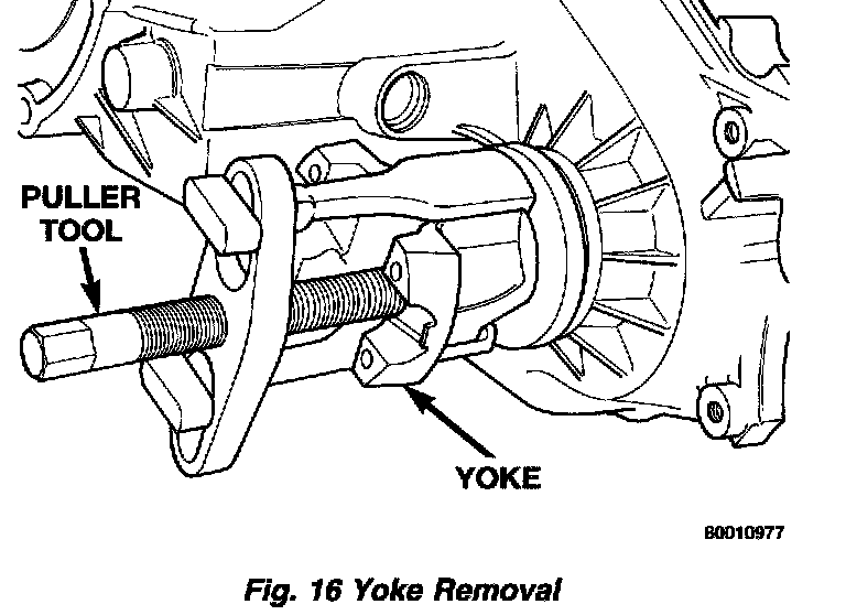 3. Remove yoke. If yoke is difficult to remove by hand, remove it with bearing splitter, or with standard two jaw puller. Be sure puller tool is positioned on yoke and not on slinger as slinger will be damaged.