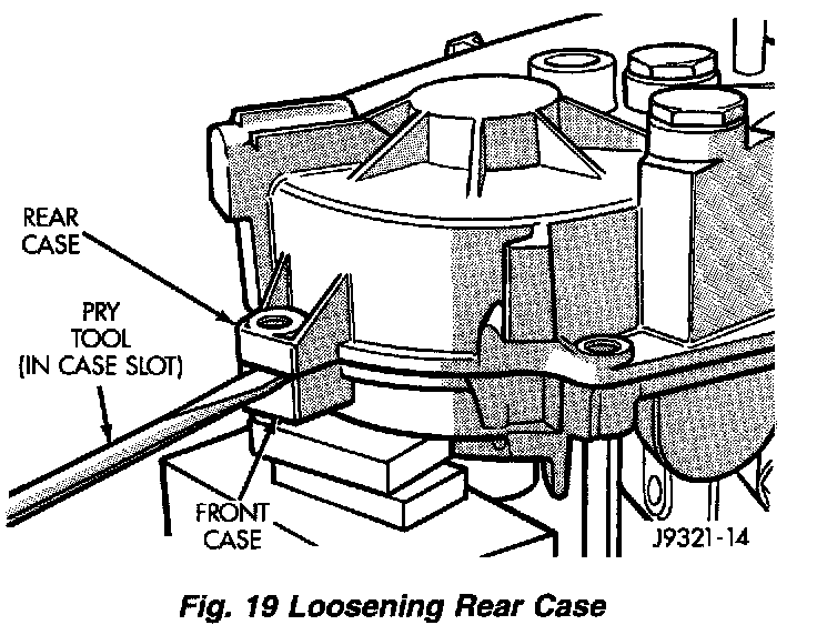 3. Loosen rear case with flat blade screwdriver to break sealer bead. Insert pry tool blade only into notches provided at each end of case.