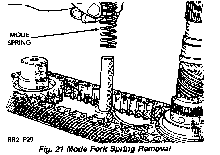6. Remove mode fork spring.