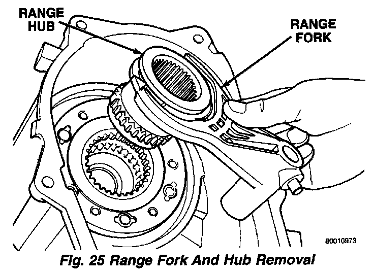 4. Remove range fork and hub as an assembly. Note fork position for installation reference.