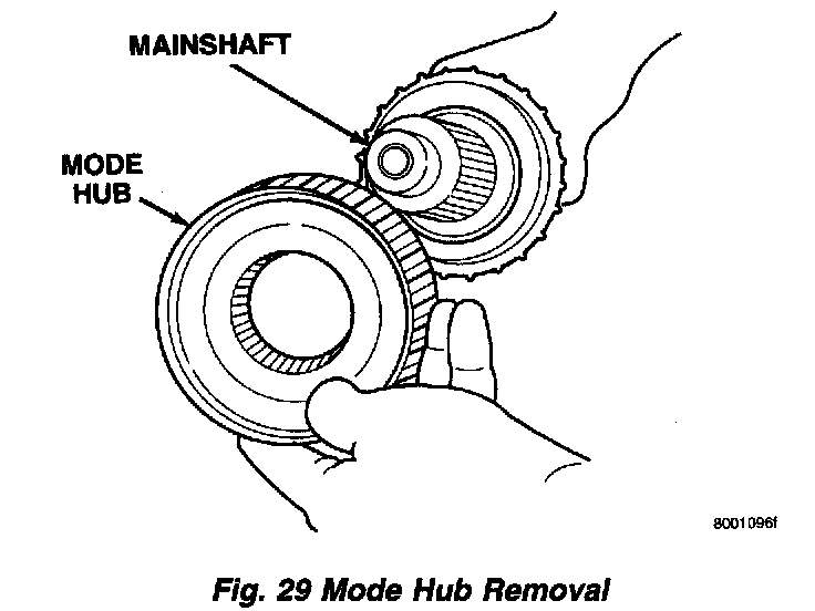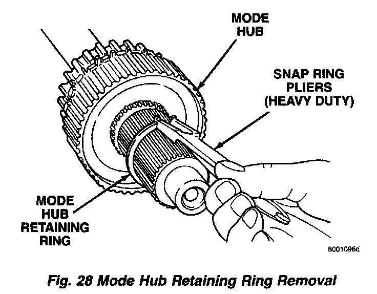 1. Remove mode hub retaining ring with heavy duty snap-ring pliers.