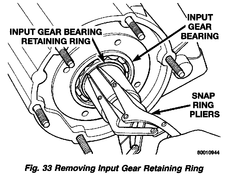 4. Remove input gear retaining ring with heavy duty snap-ring pliers.