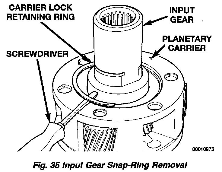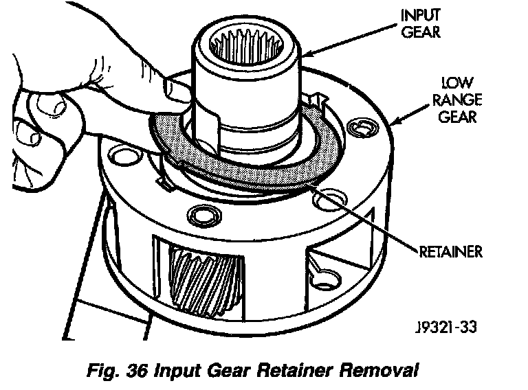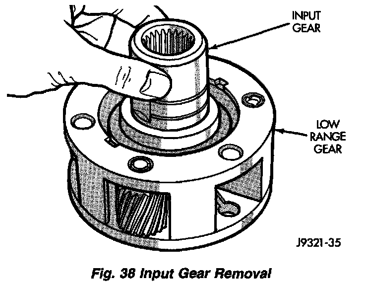 1. Remove snap-ring that retains input gear in low range gear.