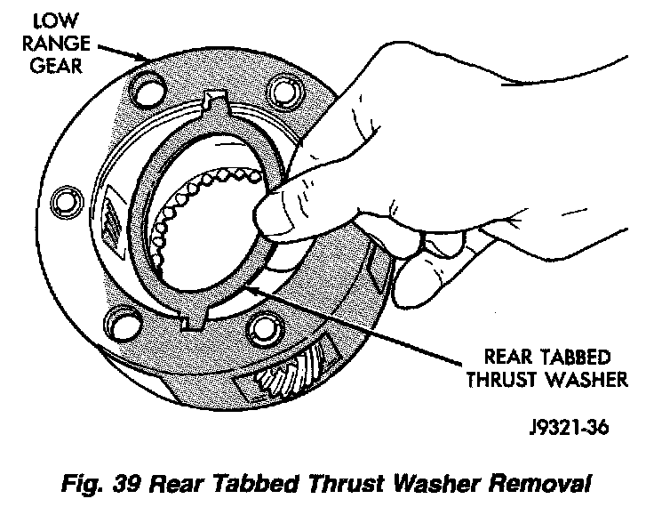 5. Remove rear tabbed thrust washer from low range gear.