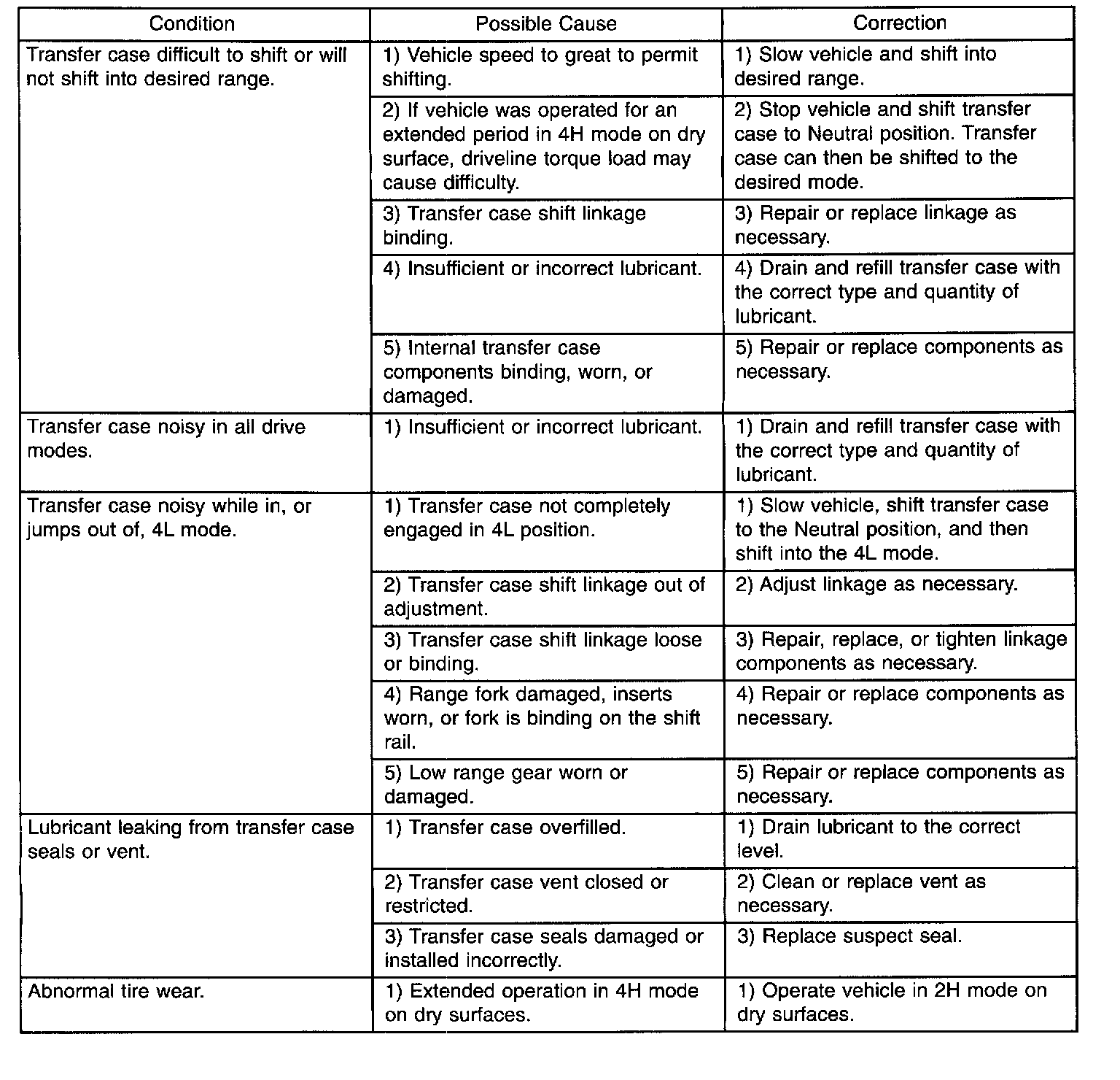 Transfer Case: Testing and Inspection