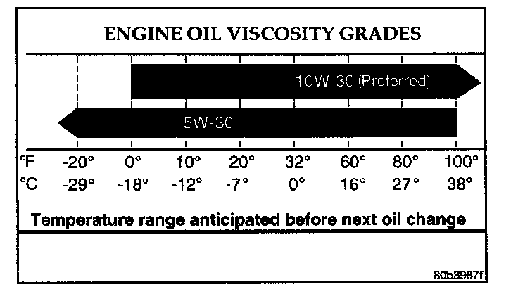 When choosing an engine oil, consider the range of temperatures the vehicle will be operated in before the next oil change. Select an engine oil that is best suited to your area's particular ambient temperature range and variation.