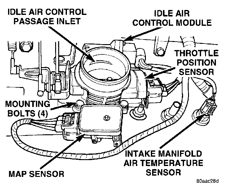 1. Inspect rubber L-shaped fitting from MAP sensor to throttle body. Repair as necessary.