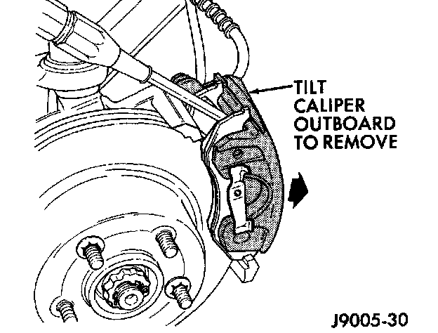 7. Tilt top of caliper outward with pry tool if necessary and remove caliper.