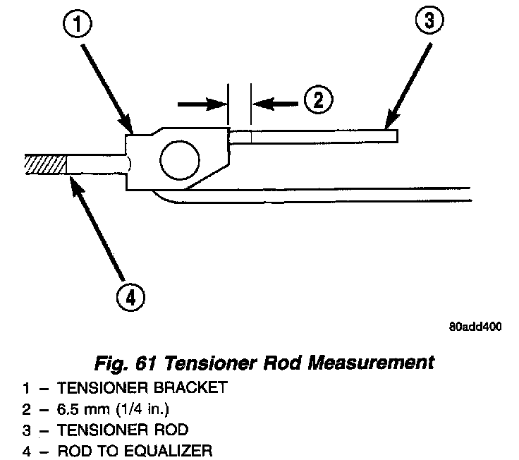 9. Tighten adjusting nut at equalizer until mark on tensioner rod moves into alignment with tensioner bracket.