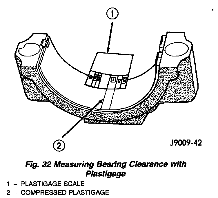 8. If the correct clearance is indicated, replacement of the bearing inserts is not necessary. Remove the Plastigage from crankshaft journal and bearing insert. Proceed with installation.