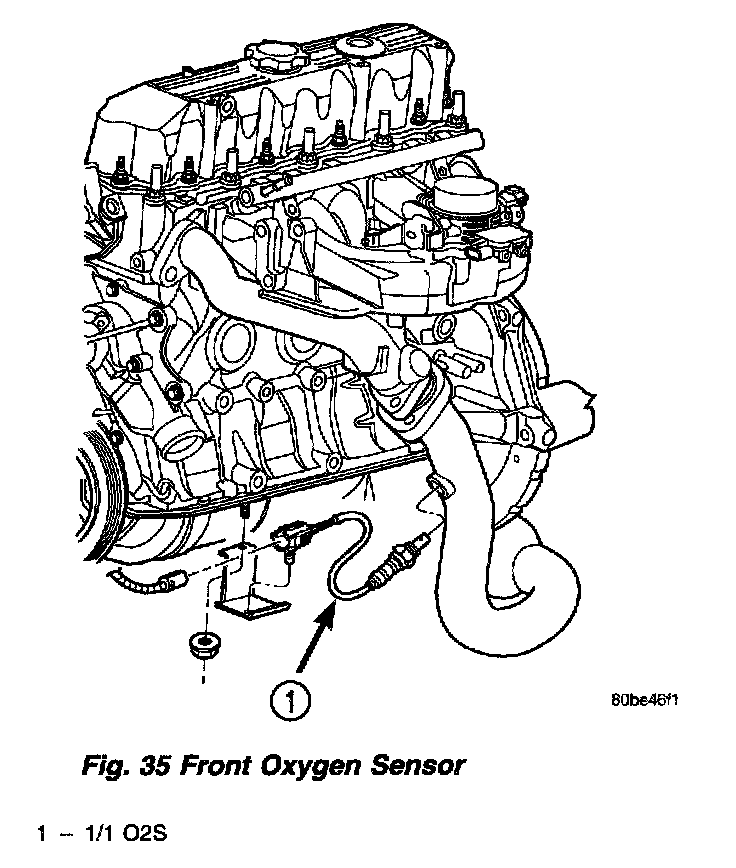WARNING: THE EXHAUST MANIFOLD, EXHAUST PIPES AND CATALYTIC CONVERTER BECOME VERY HOT DURING ENGINE OPERATION. ALLOW ENGINE TO COOL BEFORE REMOVING OXYGEN SENSOR.