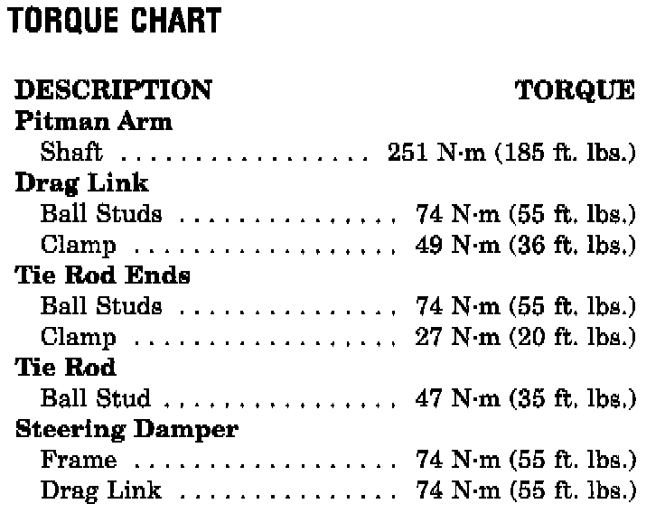 Steering Linkage Tightening Specifications