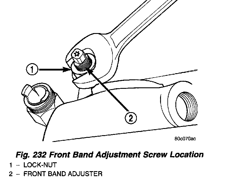 2. Loosen band adjusting screw locknut (Fig. 232). Then back locknut off 3-6 turns. Be sure adjusting screw turns freely in case. Apply lubricant to screw threads if necessary.