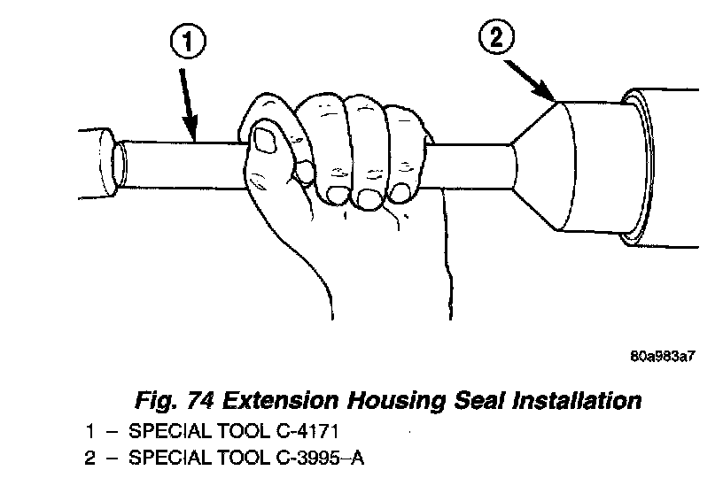 3. Install new oil seal in housing using Seal Installer C-3995-A (Fig. 74).
