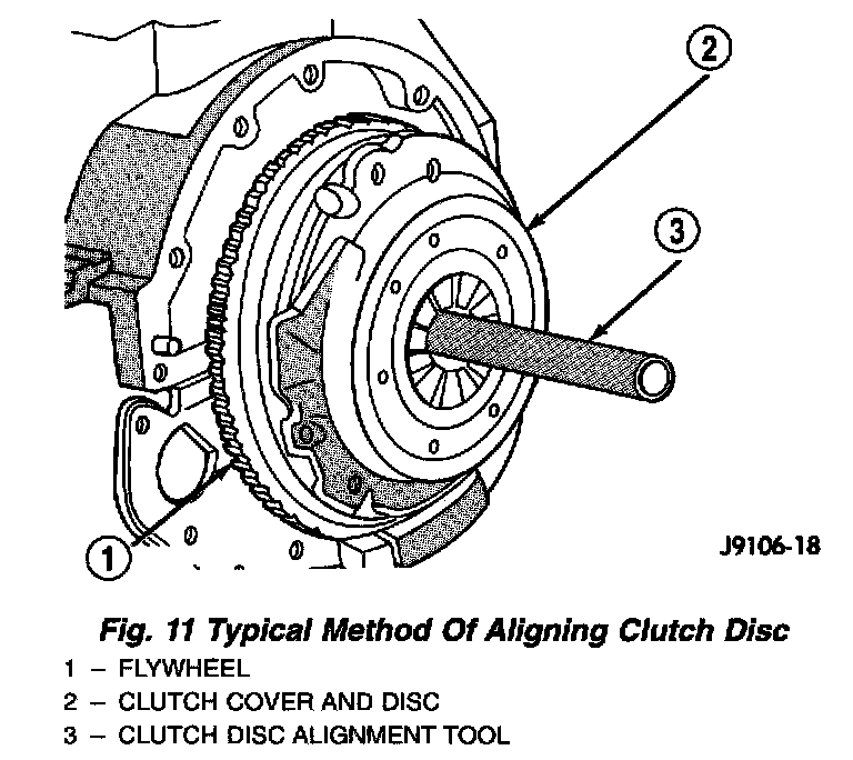 6. Insert clutch alignment tool in clutch disc (Fig. 11).