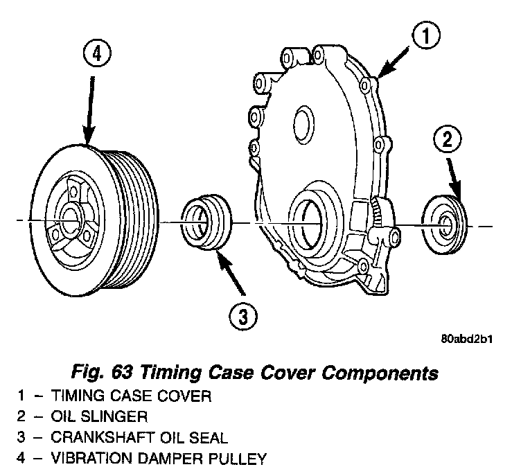 10. Apply MOPAR Silicone Rubber Adhesive Sealant to the keyway in the crankshaft and insert the key. With the key inserted in the keyway in the crankshaft, install the vibration damper, washer and bolt. Lubricate and tighten the bolt to 108 Nm (80 ft. lbs.) torque.