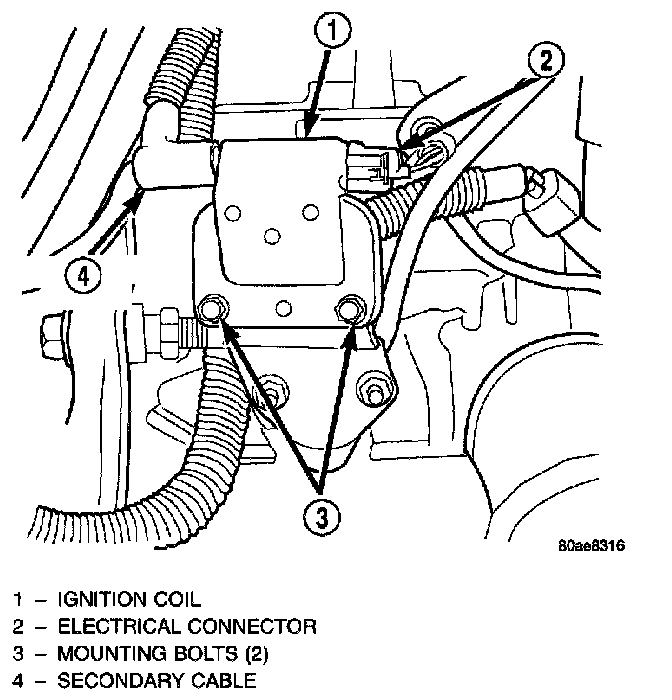 Battery voltage is supplied to the ignition coil positive terminal from the ASD relay. If the PCM does not see a signal from the crankshaft and camshaft sensors (indicating the ignition key is ON but the engine is not running), it will shut down the ASD circuit.