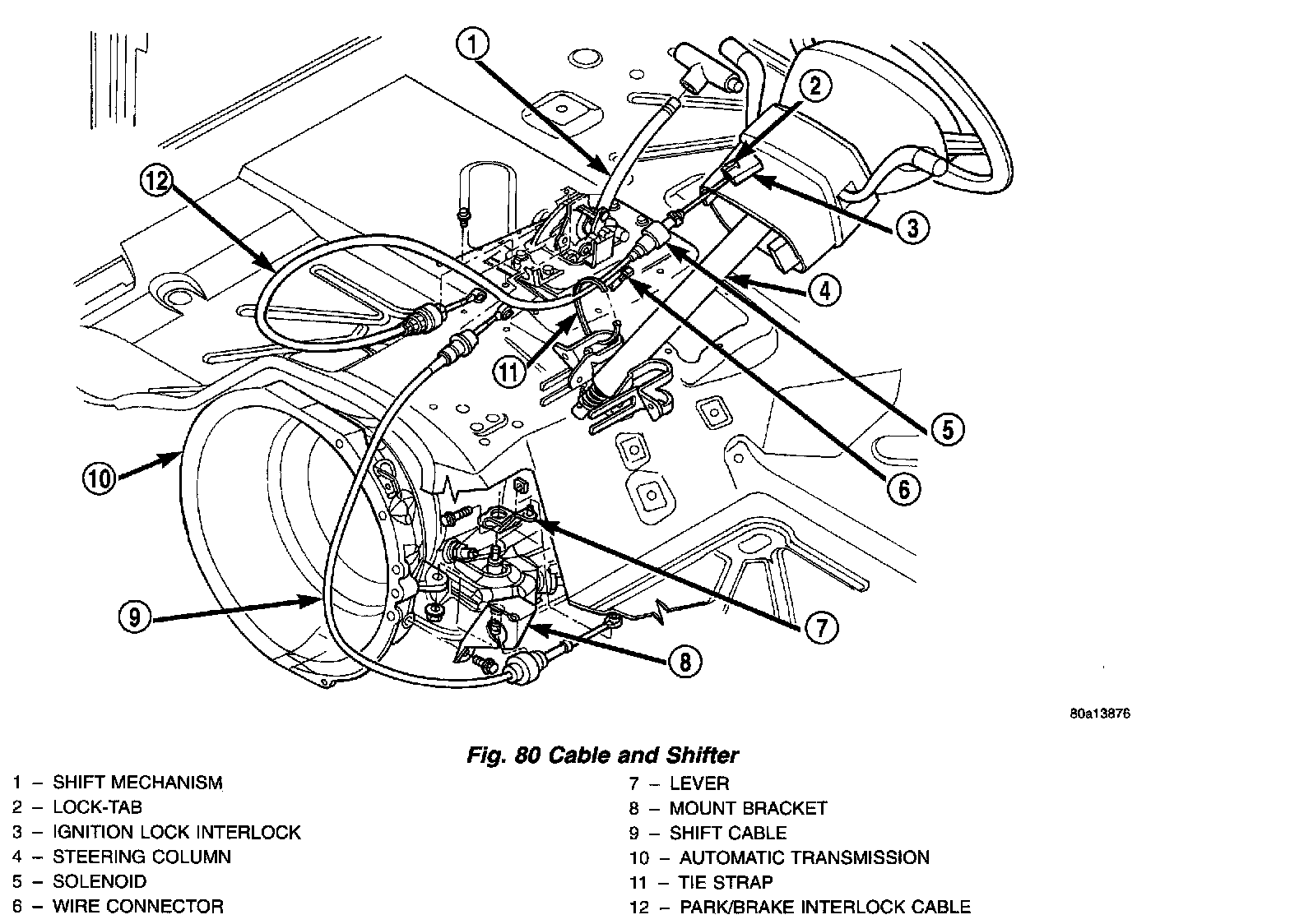 1. Route replacement cable behind instrument panel and under floor console area to shift mechanism (Fig. 80).