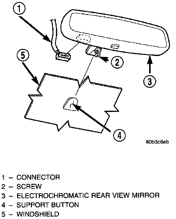 3. Remove the screw that secures the automatic day/night mirror to the support button on the windshield.