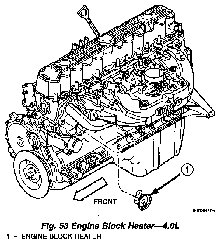 2. Insert block heater assembly with element loop pointing at twelve o'clock (Fig. 53) (Fig. 54).
