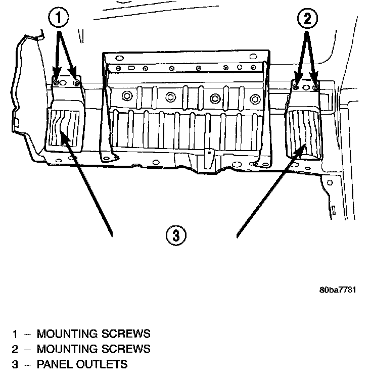 2. Remove the two screws that secure each outlet to the backside of the instrument panel top pad.