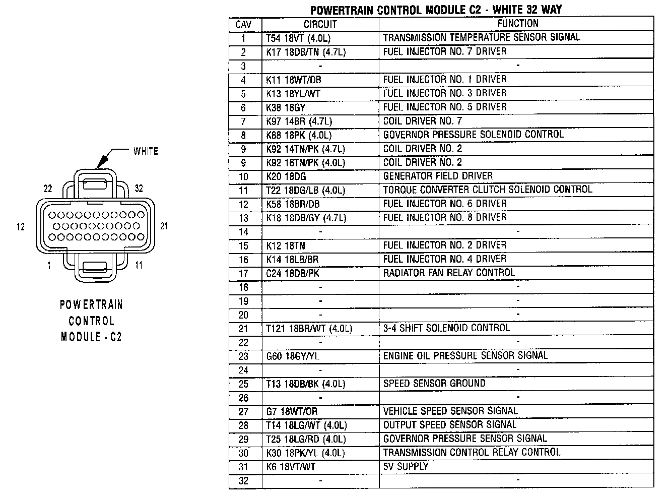 Powertrain Control Module C2 - White 32 Way: