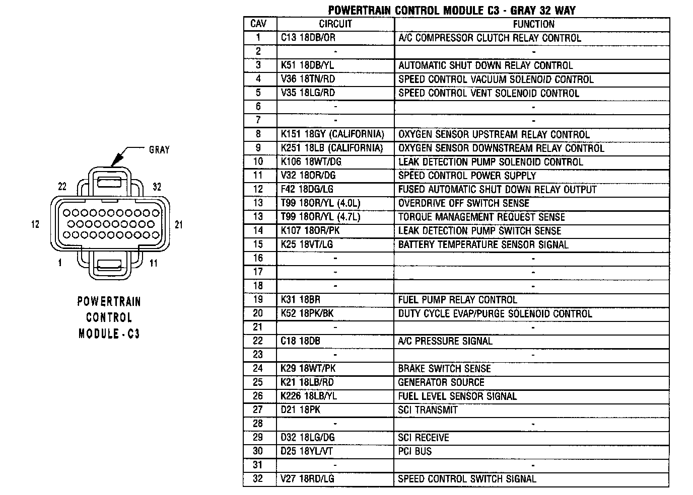 Powertrain Control Module C3 - Gray 32 Way: