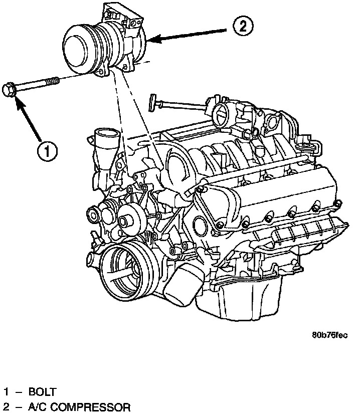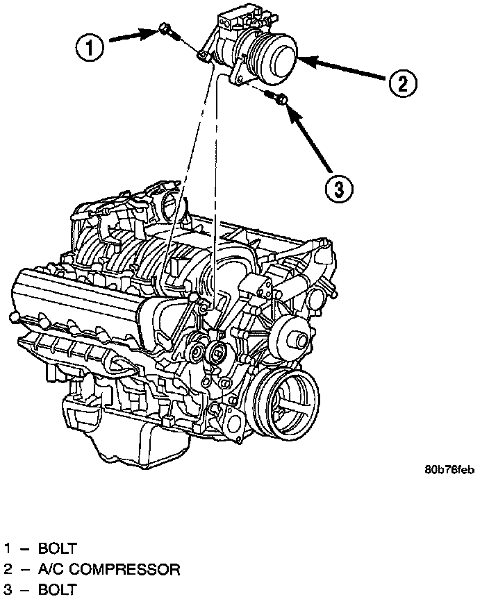 The compressor may be removed and repositioned without disconnecting the refrigerant lines or discharging the refrigerant system. Discharging is not necessary if servicing the compressor clutch or clutch coil, the engine, the cylinder head, or the generator.WARNING: REVIEW THE WARNINGS AND CAUTIONS BEFORE PERFORMING THE FOLLOWING OPERATION